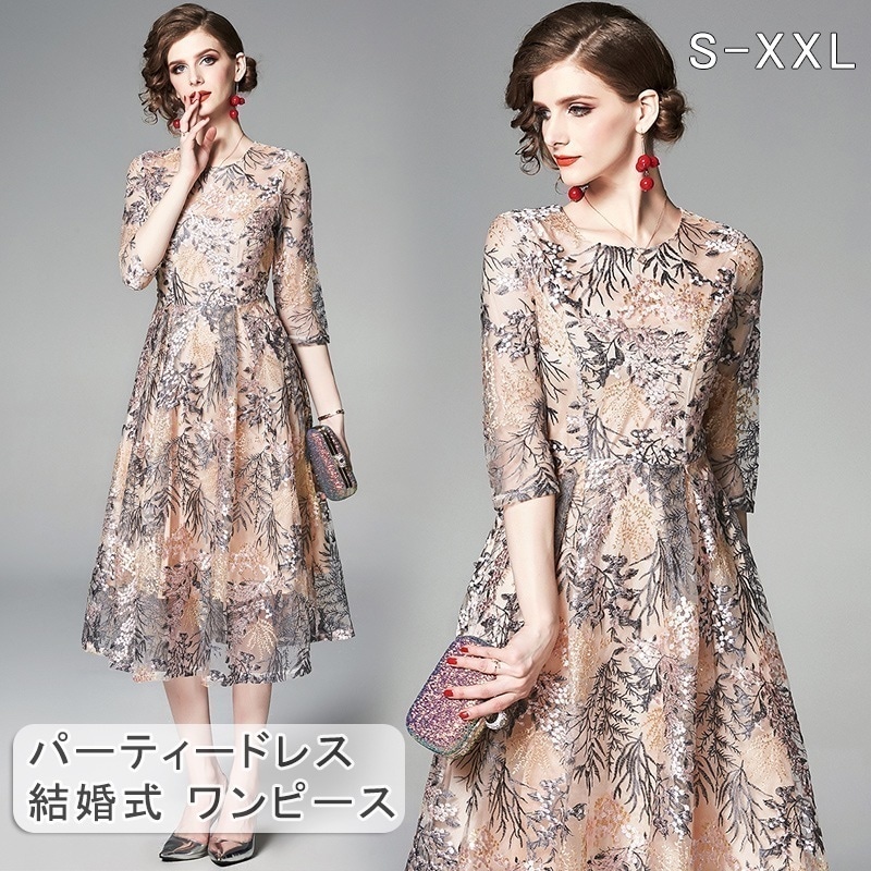 素晴らしい【即納】パーティードレス 結婚式 ワンピース 20代 30代 ワンピース パーティドレス 花柄刺繍 ウェディングドレス ウエディング ドレス 二次会 花嫁 ブライズメイド ミモレ丈 結婚式 入学式 演