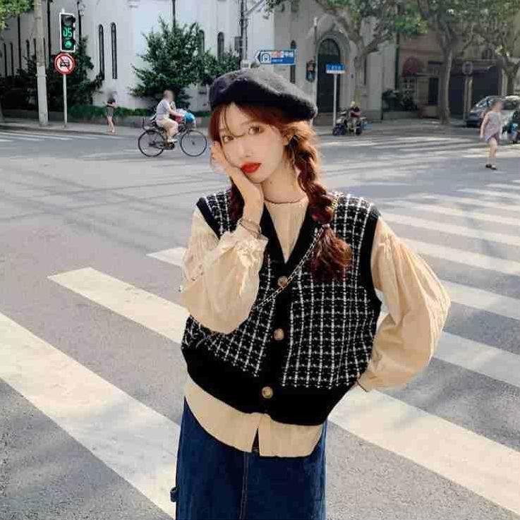 【お気に入り】長袖ブラウス ベスト トップス シャツ ブラウス ベスト 袖あり 長袖 Vネック 前開き 2点セット ツーピース かわいい 大人可愛い きれいめ シンプル カジュアル 大人 上品 おしゃれ お洒落
